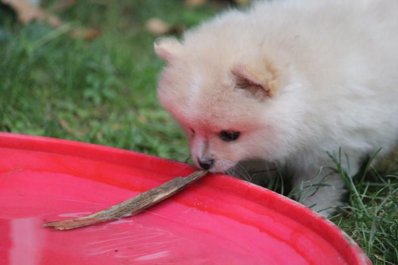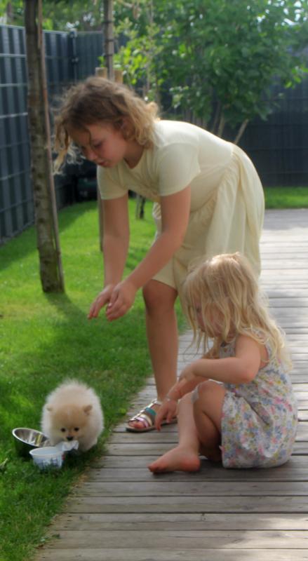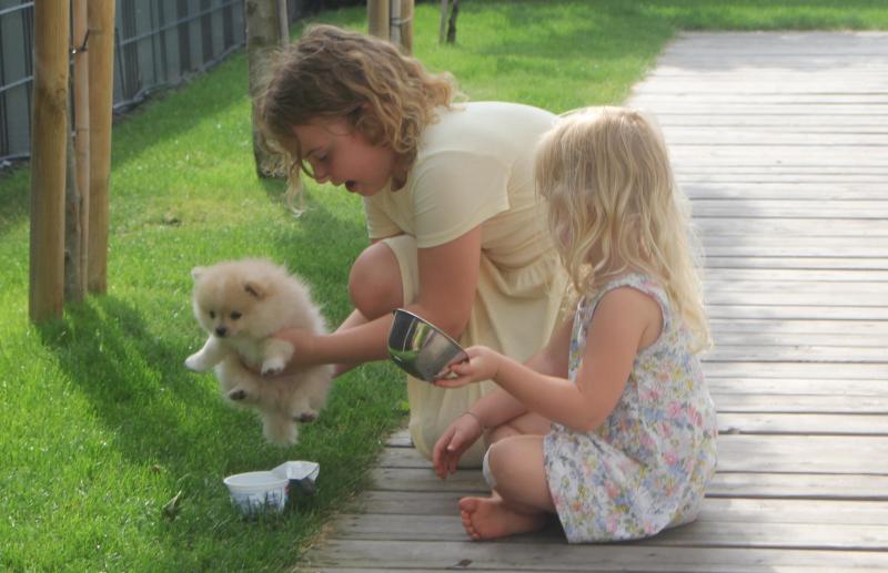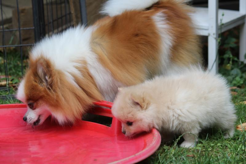 Vicky kümmerte sich erneut fürsorglich um ihre Welpen, bereitete sie auf ihr Leben as Kleinspitze vor und säugte sie bis zum Schluss.