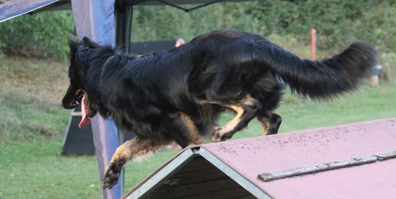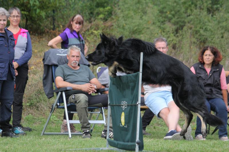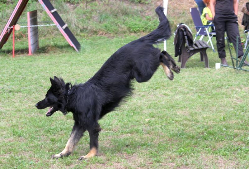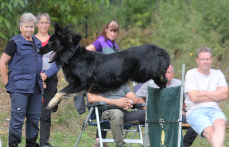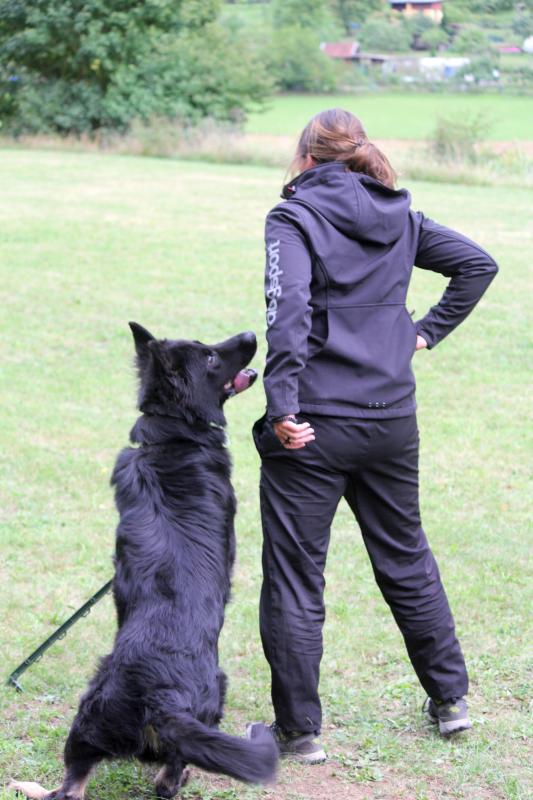 Anna war mit Khan von der Schüpfer Hexe gekommen, dem Vater unserer O-Welpen. Die Beiden kamen nach langer Verletzungspause von Khan mit einem guten Ergebnis von 270 Punkten von der gerade stattgefundenen LG Ausscheidung nach Heidenheim. Und hätte Khan bei der Ausscheidung nicht zum ersten Mal in seinem Hundeleben beim Apportieren den Rücksprung über die Hürde anstatt über die verlangte A-Wand gewählt, dann wären sie qualifiziert gewesen. Aber Khan ist halt immer wieder für eine Überraschung gut, er ist ein Hund mit Leben und keine Maschine. (Und das liebt Anna inzwischen besonders an ihm oder?)