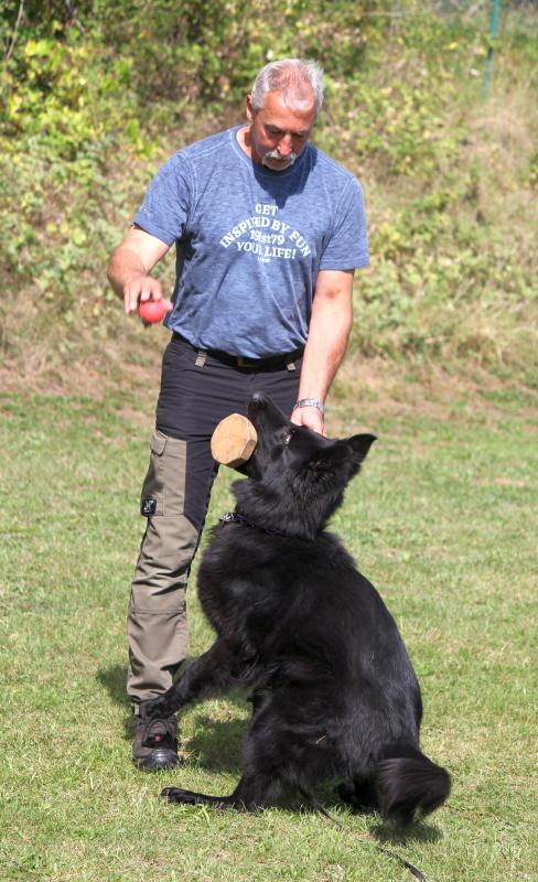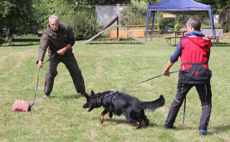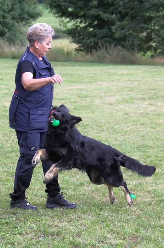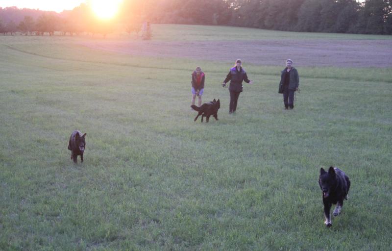 Besonders freuten wir uns darüber, dass die Deckrüdenbesitzer der letzten 3 Würfe, Michael und Anna, anwesend waren, die mittrainierten, mit unterstützten, mit Rat und Tat zur Seite standen und sich auch noch ein (hoffentlich positives) Bild vom Nachwuchs ihrer Rüden machten. Leider sind viele Deckrüdenbesitzer nach dem Deckakt und dem Empfangen der Deckgebühr an den von ihrem Rüden gezeugten Nachwuchs nicht mehr interessiert. Schön, dass es Ausnahmen gibt.