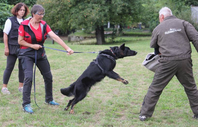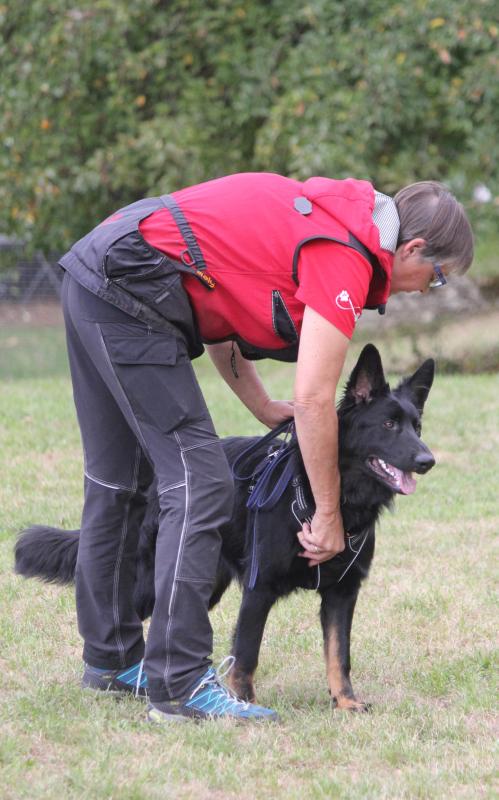Deshalb waren wir sehr erfreut, dass sich Björn bei der letzten RSV 2000 Sichtung in Hechingen freiwillig anbot, ein Trainingswochenende bei sich zu Hause in Heidenheim auszurichten, bei dem auch 7 unserer Schüpfer Hexen teilnehmen durften, von denen bis auf Quai alle bereits eine Sichtung mit unterschied-lichen Ergebnissen absolviert und dabei einiges nicht verstanden hatten. Das wollte Björn u.a. ausräumen und erklären. Danach dürften vermutlich alle begriffen haben, warum „was“ bei den Sichtungen überprüft, erarbeitet und festgehalten wird/wurde. (Foto: Björn mit der jüngsten Schüpfer Hexe)