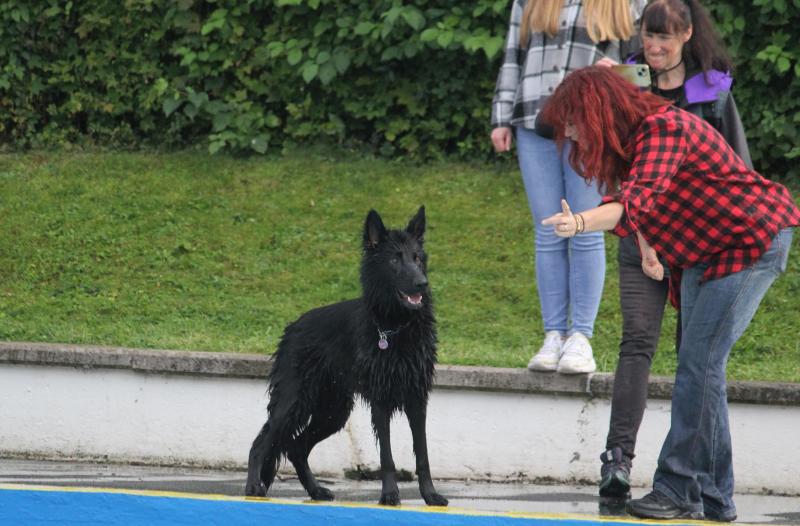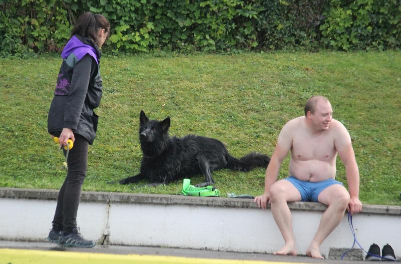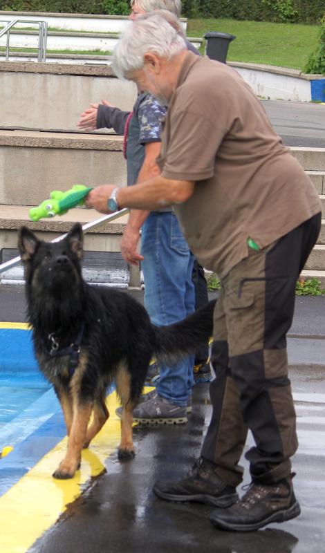 Den „O-Wurf“ vertraten Ozora mit Sophie und die Beiden zeigten sich als eingespieltes Team mit einer Super Bindung. Man hatte den Eindruck, dass Sophie mit Ozora sogar eine Begleithundeprüfung im Wasser absolvieren könnte. Im Oktober versuchen es die Beiden übrigens im Trockenen bei den Hundefreunden Brehmbachtal in Pülfringen.