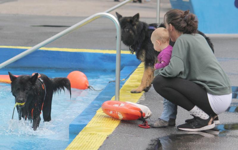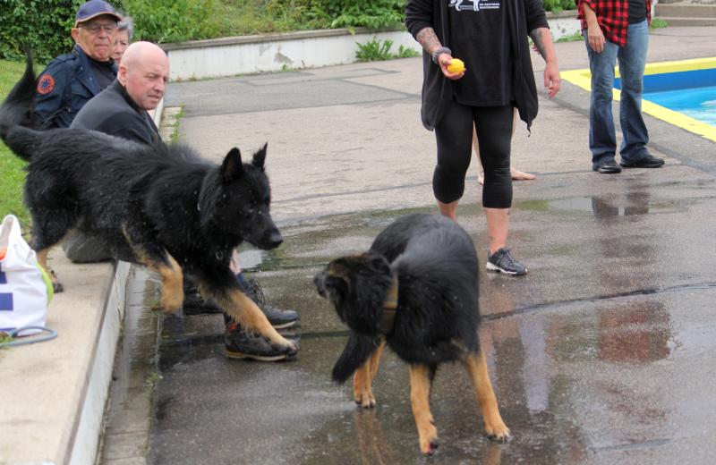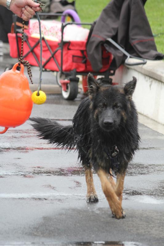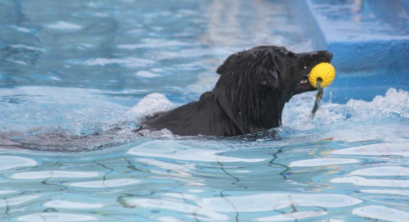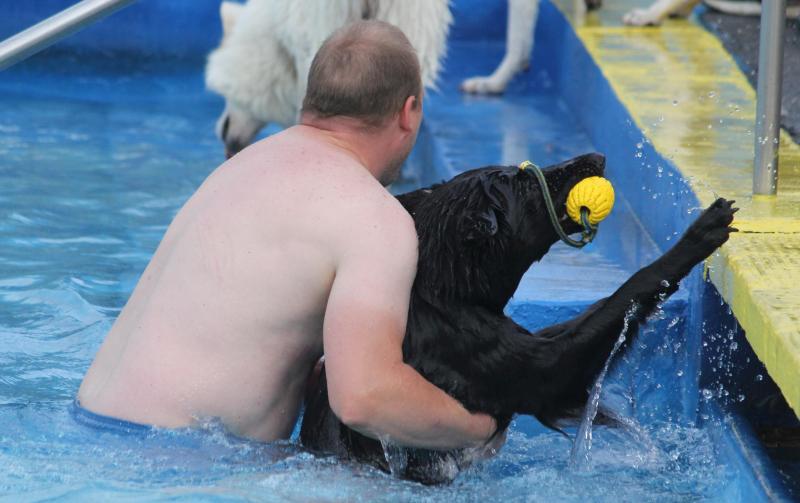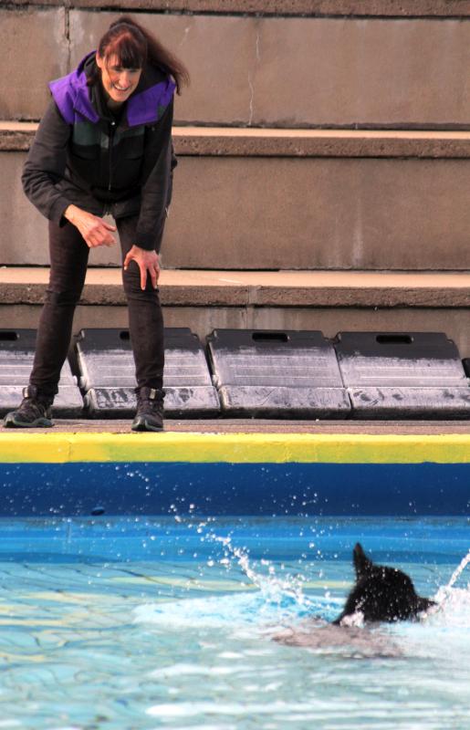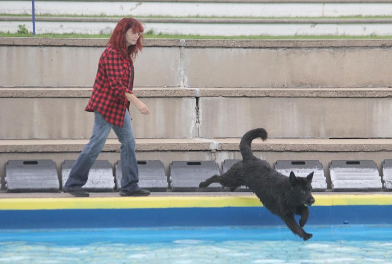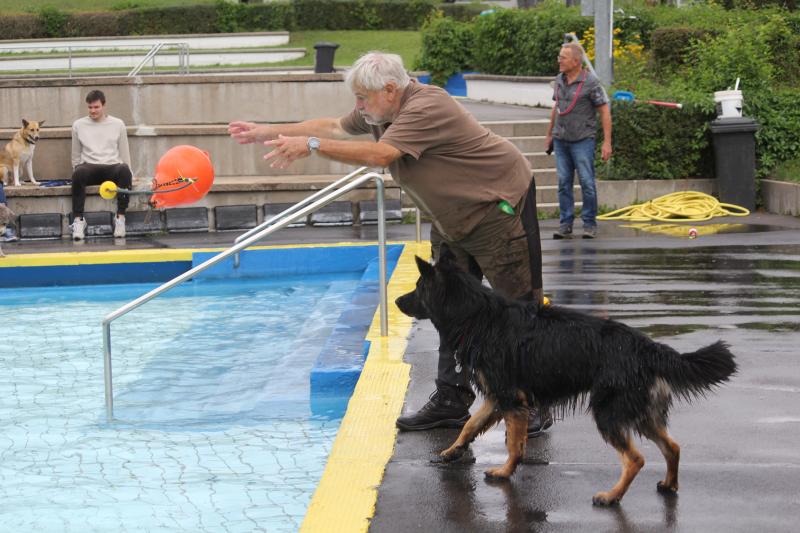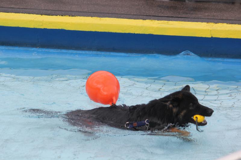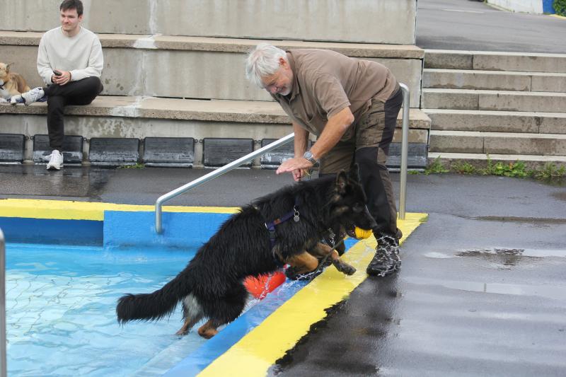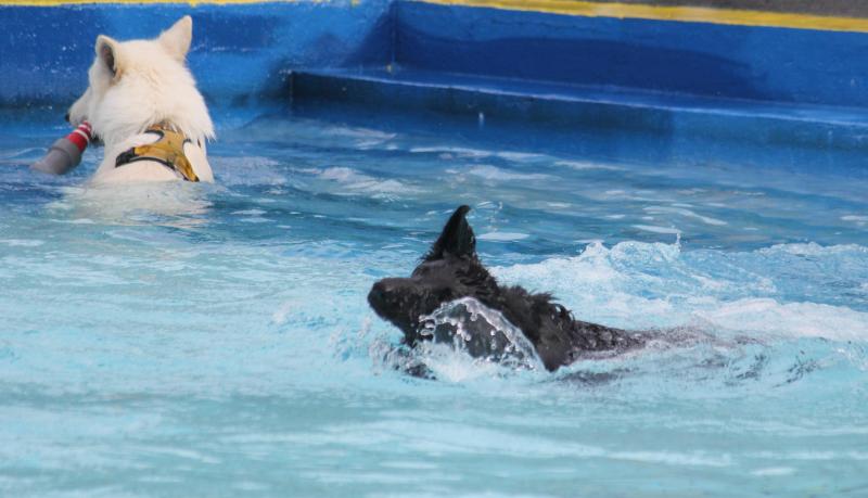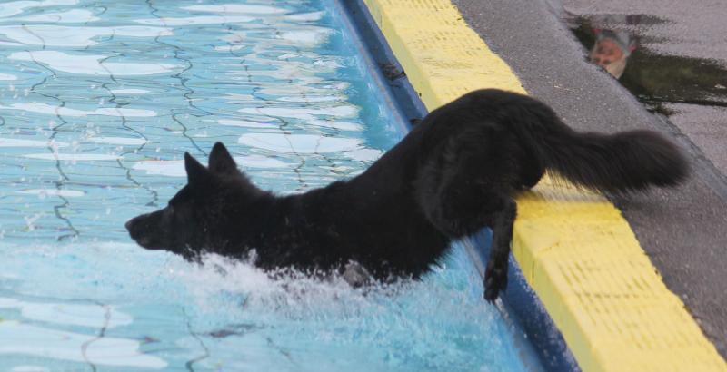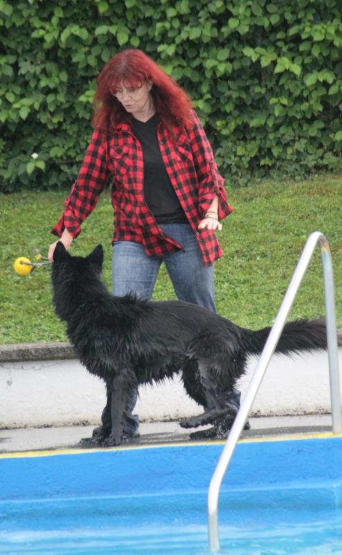 Questis Mama Danya war natürlich auch dabei und zeigte ihrem Sprössling, wie man gekonnt ins Becken springt und „jeden“ geworfenen Apportiergegenstand zurückbringt..