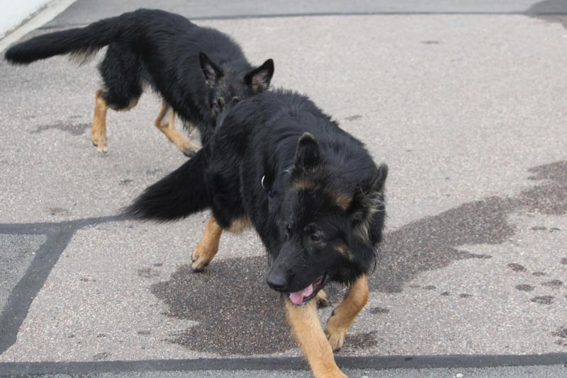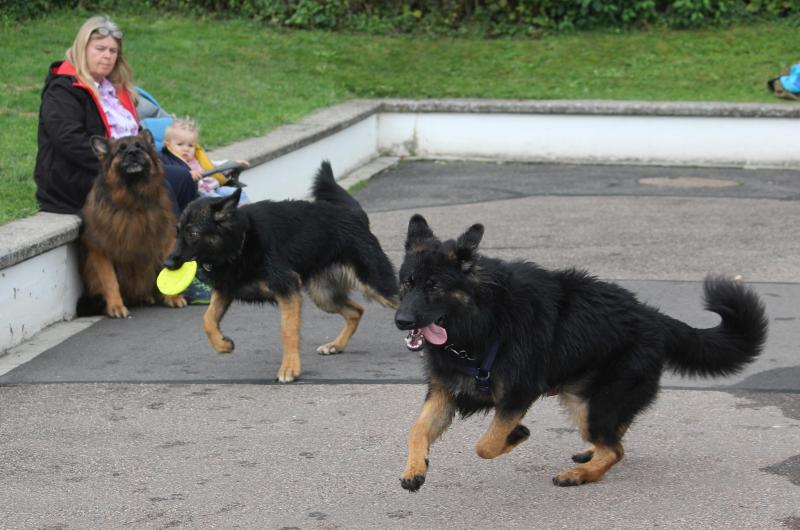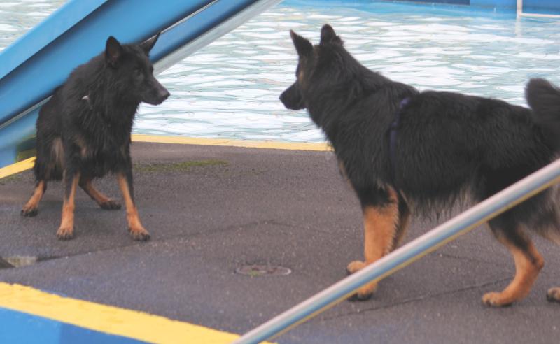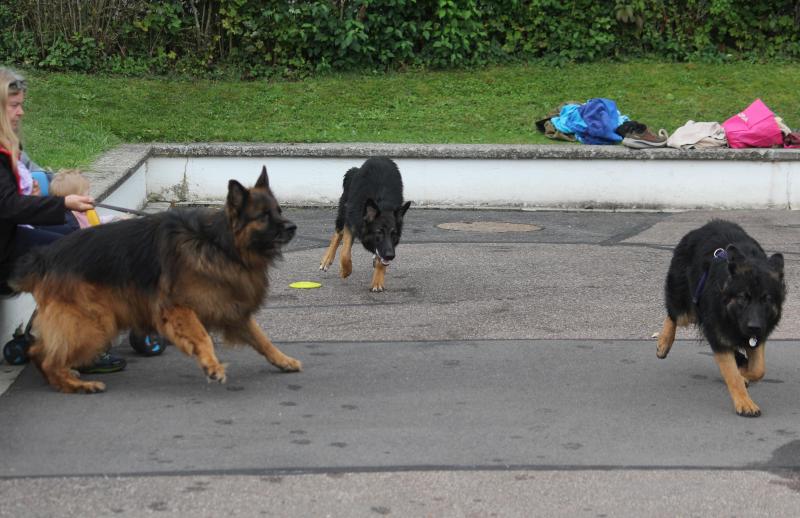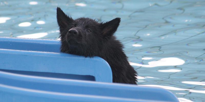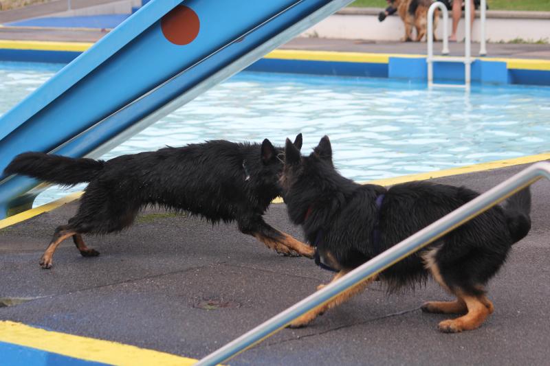 Larissas Kenzo vom K-Wurf kam als ältester Schüpfer Hexen Nachwuchs ins Schwimmbad und brachte noch Larissaas „jüngstes Rudelmitglied“ sowie Larissas Schwester mit. Und Kenzo verhielt sich absolut souverän und war schnell der anerkannte „Platzhirsch“.