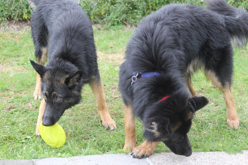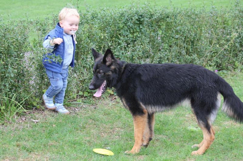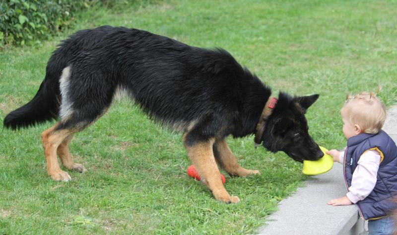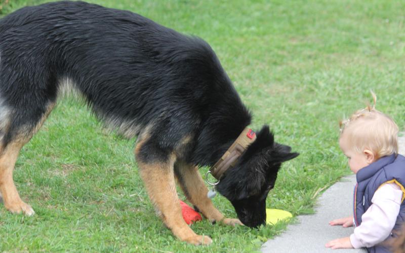 Und auch Larissas Kleinkind trat den vielen, sich frei bewegenden Hunden ohne Berührungsängste gegenüber, speziell natürlich bei Kenzo. Da wurde auch schon mal mit dem Ball ein kleines Zerrspiel absolviert, mit einem vorsichtig agierenden Kenzo.