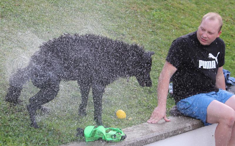 Natürlich durfte der „nasse Dank“ von Nayara nicht fehlen. Sie hatte extra gewartet, bis Basti sein trockenes wärmendes T-Shirt angezogen hatte, um sich gründlich zu schütteln.