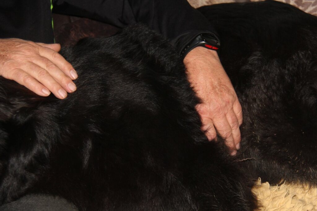 Sie genießt / genoss lange, sanfte Streicheleinheiten, die auch helfen können, den Stress vor der Geburt zu lindern. Während sie die anderen Hunde des Ruderls bei der Geburt nicht duldet, sind wir, ihre Menschen, sehr willkommen. Was für ein Vertrauensbeweis.