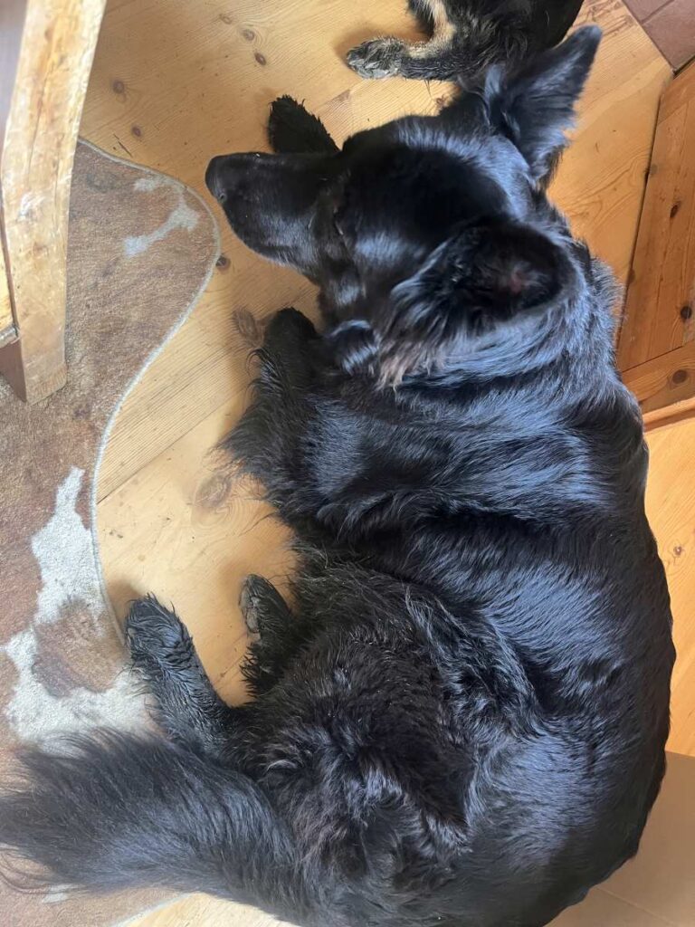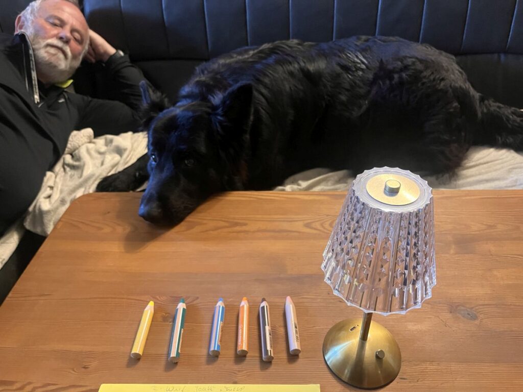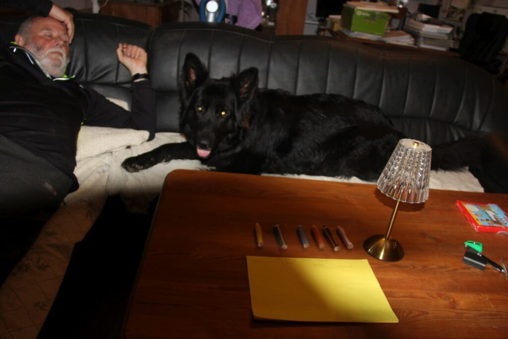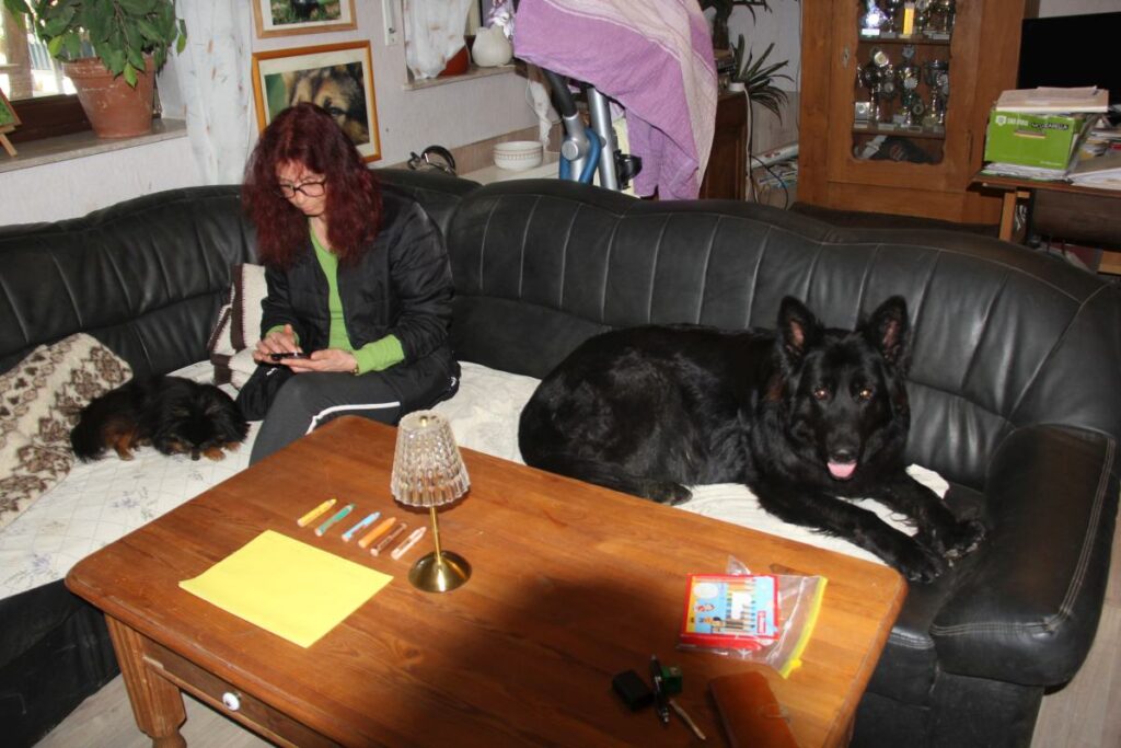 Und sie hat heute abend selbständig das Wohnzimmer mit den anderen Hunden verlassen und sich ins Hundezimmer zurückgezogen. Sie suchte erkennbar ihre Ruhe und wir haben sie natürlich begleitet. Während wir mit ihr warten, schreibt Hilmar noch schnell diesen Beitrag für die Homepage.