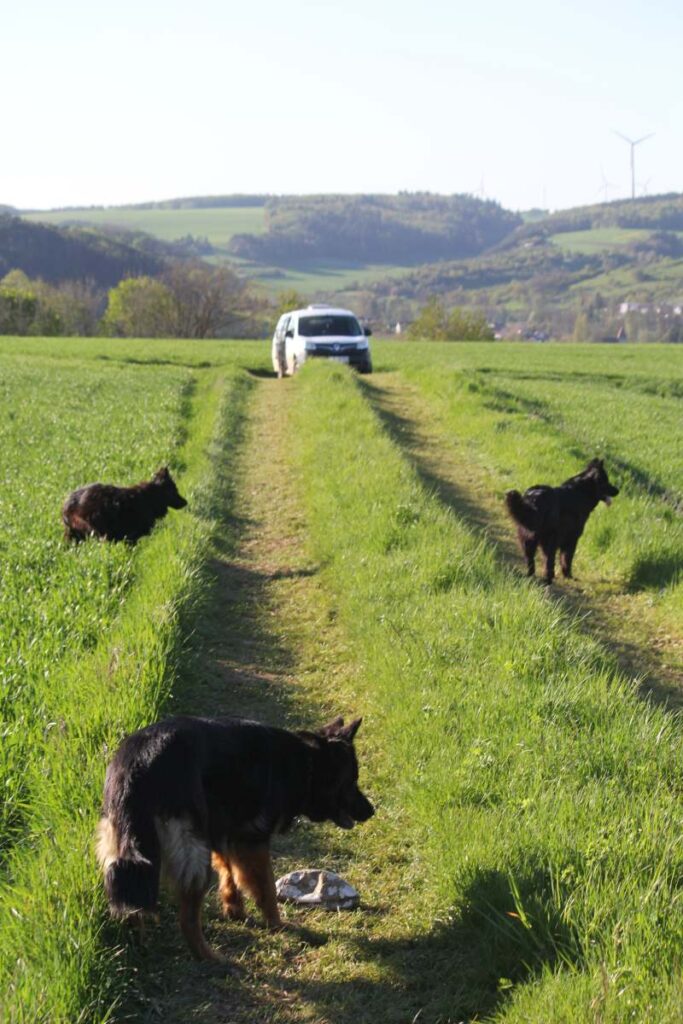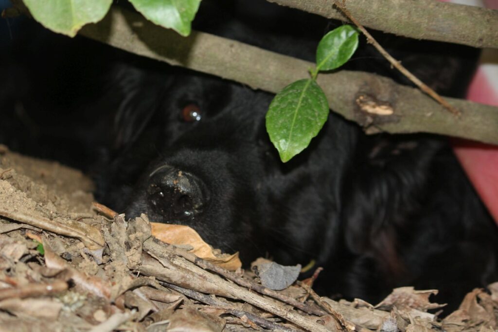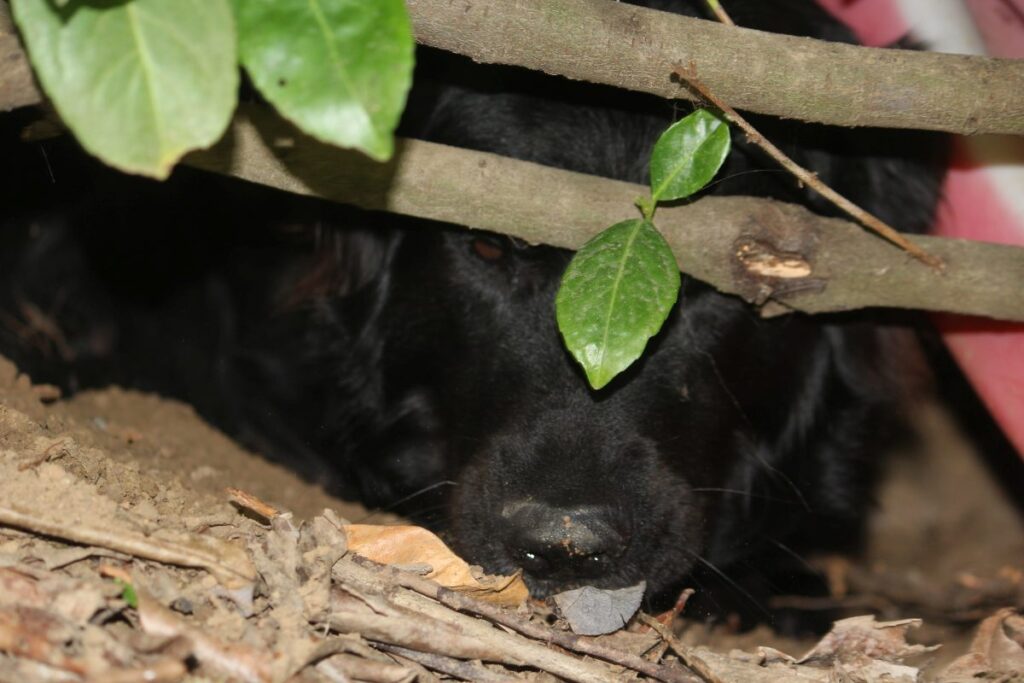 In der letzten Nacht wurde sie um 3 Uhr, um 5 Uhr und um 06.30 Uhr sehr unruhig und wir waren eigentlich sicher, dass es nunmehr losgeht. Im Garten buddelte sie dazu passend eine Arte Wurfkuhle unter den Büschen und legte sich hinein. Näherte sich ein anderer Hund des Rudels, wurde er verjagt.
