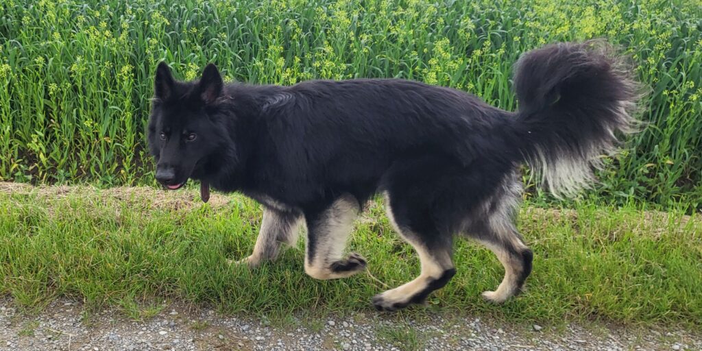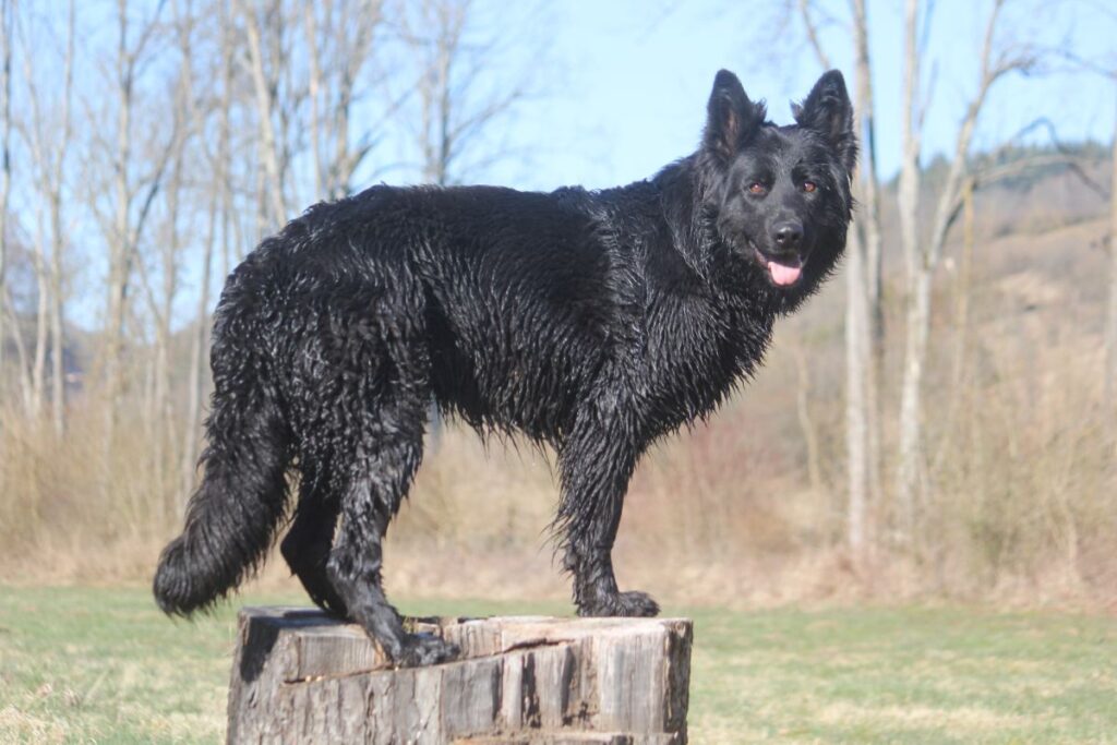Zu unserem 25jährigen Zwingerjubiläum wollten wir etwas Neues ausprobieren und gingen erstmals zu einem Stockhaarrüden zum Decken und verpaarten zum 1. Mal zwei lackschwarze Schäferhunde miteinander.