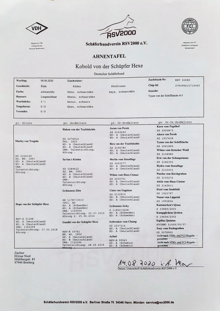 Bei working dog ist der erweiterte Stammbaum der beiden Hunde anzuschauen. Ein Hochladen auf unsere Homepage war leider nicht mehr möglich.